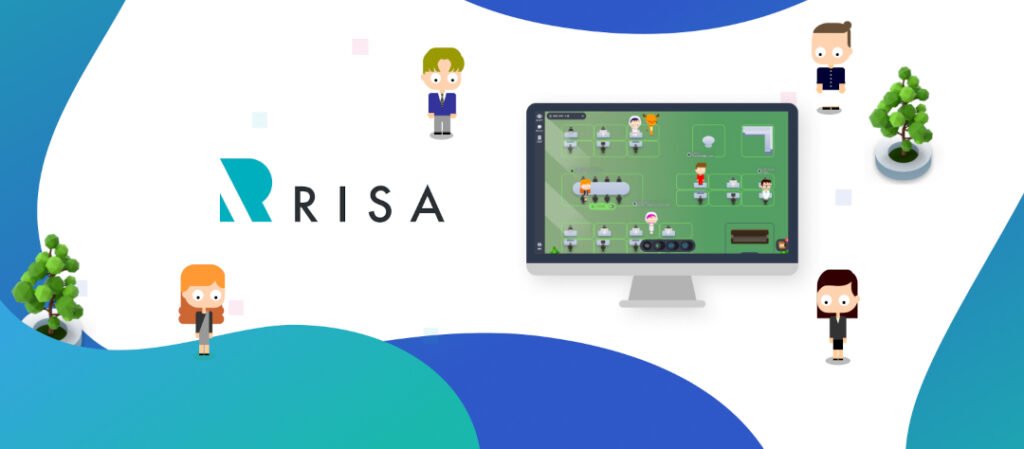 RISAは、仮想オフィスツールの中でも、画面上にアバターを作り、アバターを動かして会話するまさに、メタバースといえるサービスです。また、オフィスも自分で家具を配置したりと、カスタマイズが可能です。アバターのかわいい動きが、自然と会話を創出してくれます。